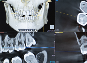歯科用CTで、歯や顎の骨を3次元的、立体的に様々な方向から診断
