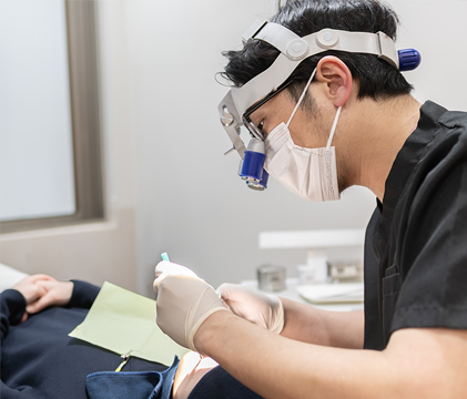 当院では、患部を25倍以上に拡大できるマイクロスコープや高倍率ルーペを使用し、細部まで確認しながら治療を行っています。